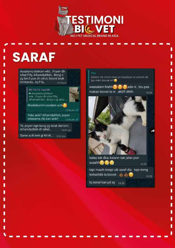 Vitamin ni sesuai utk semua jenis baka kucing termasuk haiwan berbulu yang lain termasuk arnab dan anjing.