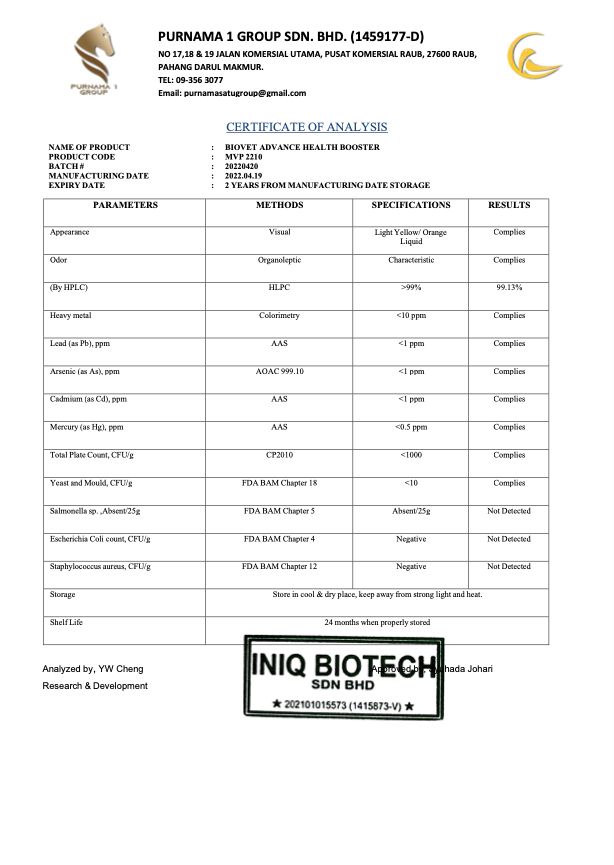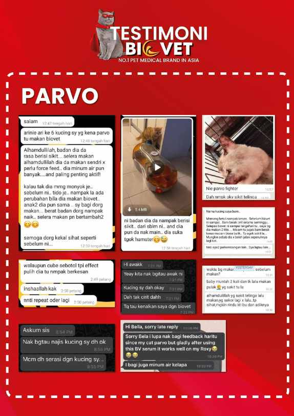 Biovet adalah vitamin yang diperkaya dengan Sialic Asid dan Vitamin B16 dirumus untuk merawat pelbagai masalah kronik haiwan peliharaan seperti parvo, sporo, luka, sakit mata.